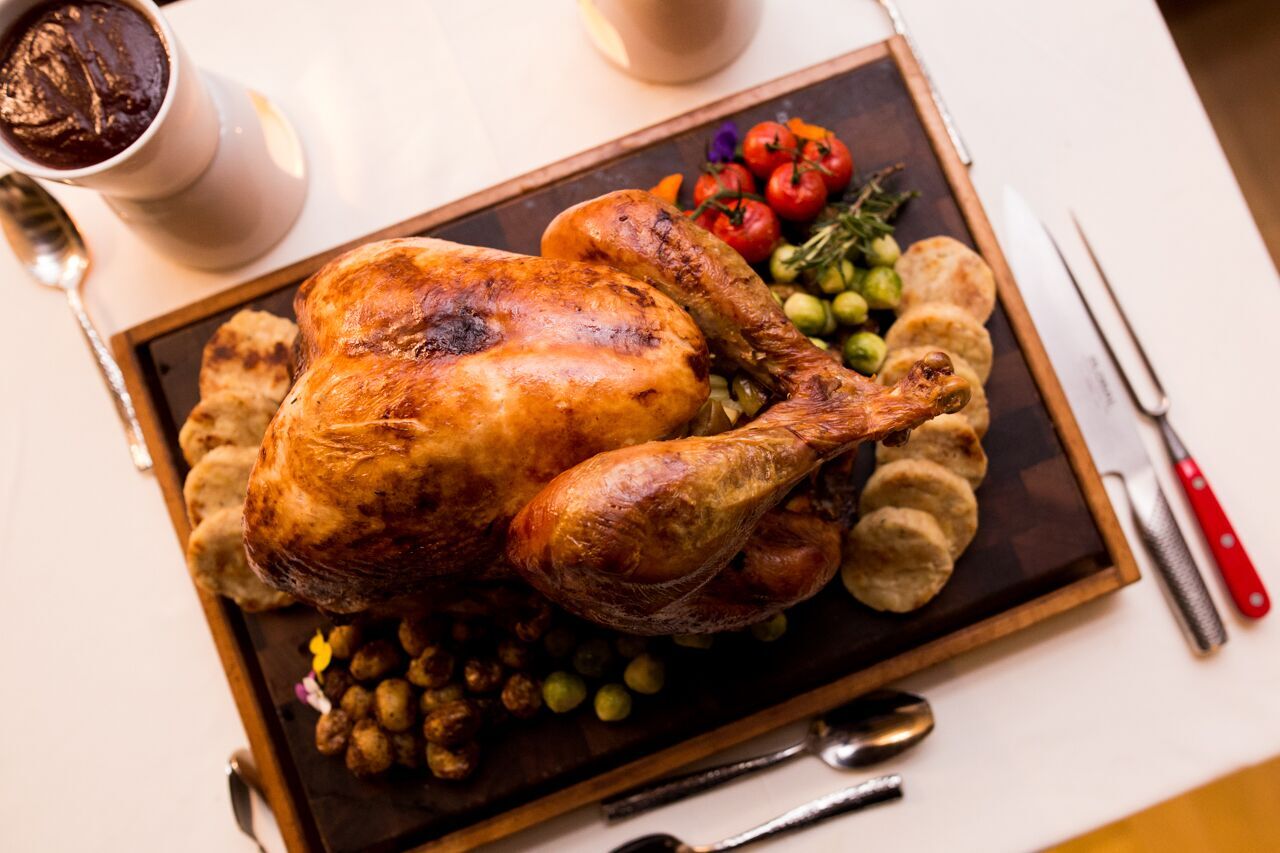 Take away traditionally roasted turkey spiced and herbed with the nostalgic flavours of home. With every bite, discover the succulence of turkey stuffed with cranberry, sage and chestnut or add a bit more spunk with giblet and sausage. Each turkey takeaway comes with Cranberry sauce, Turkey gravy, roasted root vegetables, Brussel sprouts with chestnuts and mashed potatoes.