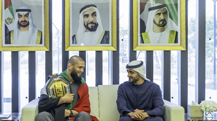 Chimaev secured the UFC Middleweight World Title after defeating South Africa’s Dricus du Plessis in a highly anticipated match, extending his undefeated professional record to 15 wins. His Highness Sheikh Zayed congratulated him on the achievement, praising his discipline, resilience and world-class performance that earned him the belt.