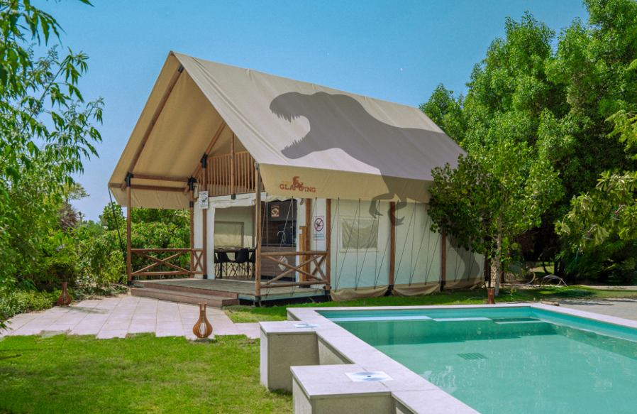 The retreat features 57 themed tents, each inspired by a different prehistoric era, from 'Triassic Megapods' to 'T-REX Terahavens'. Guests can choose from Jurassic Signature Tents with garden views and barbecues, or Premium Tents with private pools and added luxuries. Each stay combines the thrill of the outdoors with the elegance of a boutique escape.