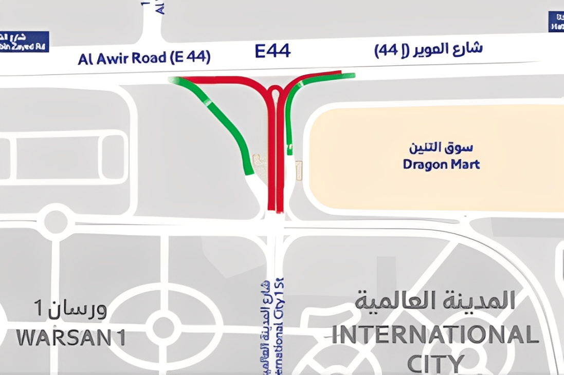 The entrance from Ras Al Khor Road leading to International City 1 has been closed, with two alternative access points introduced along the route. The additional detours will help ease congestion and maintain smoother traffic flow in the area. Clear directional signs have been placed along the affected roads to guide drivers safely through the new routes.