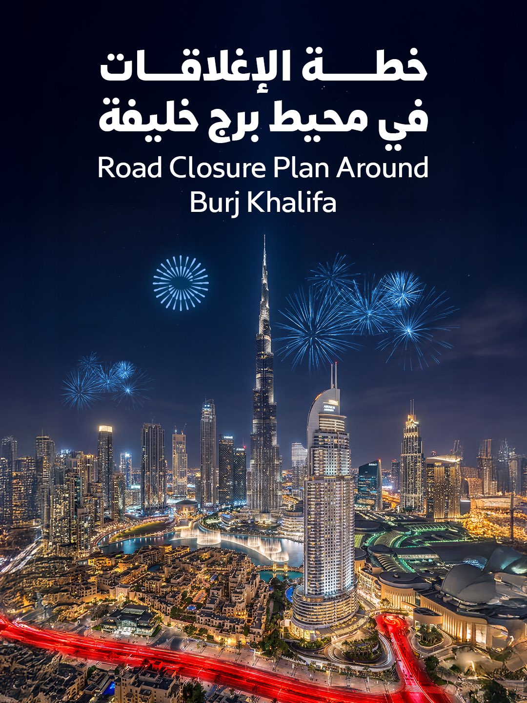 To maintain smooth traffic flow, authorities will implement phased road closures in and around the Burj Khalifa area starting in the afternoon on 31 December.